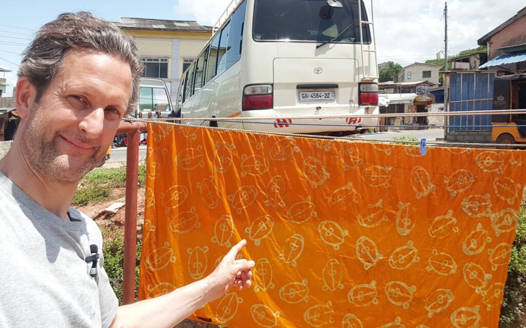 Lange schon wollten wir, Hélène und Andreas, dieses Projekt besuchen, weil diese NGO auch aus der Ferne schon zu unseren Lieblingsprojekten im Fairen Handel zählte. Im Mai 2025 ist es uns schließlich gelungen: Eine Reise zu den Global Mamas nach Ghana. An zwei Standorten im Süden Ghanas, in Kpong am Voltastausee und in Cape Coast an der Küste, haben sie sich auf die Herstellung von sommerlicher Damenkleidung spezialisiert, die mit der aufwändigen Waxprint-Technik (Wachsdruck) veredelt ist.