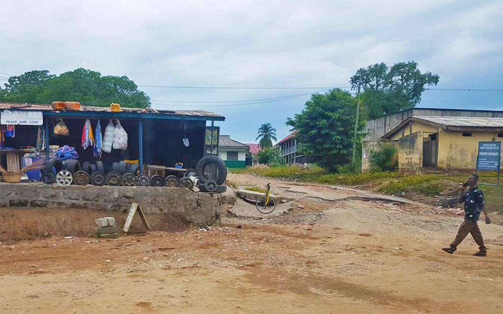Staubige, holprige Straßen führen von der Hauptstadt Accra an der Küste in Richtung Kpong am Voltastausee. Die Landstraßen sind gesäumt von einfachen Hütten, kleinen Häuschen und Verkaufsständen, an denen die angrenzenden Bewohner*innen ihre Produkte, oft Obst und Gemüse von ihren Gärten und Feldern, anbieten. Plötzlich taucht am Straßenrand ein Schild auf, auf dem Fair Trade Zone steht. Wir biegen auf einen noch holprigeren Feldweg ein und rumpeln durch das Hinterland.
